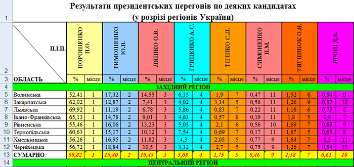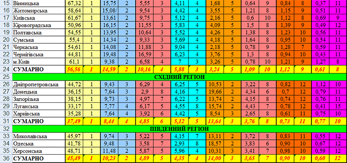 Так, він «переміг» зайнявши «перше» місце практично в усіх регіонах України.