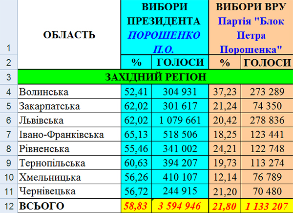 Для чого я так детально нагадав результати Президентських виборів? Для того, аби було із чим порівнювати результати парламентських.
