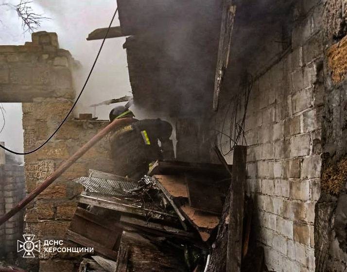 У Херсоні 6 грудня внаслідок чергових ворожих атак спалахнули кілька пожеж: горіли квартири, дах двоповерхового житлового будинку та господарча споруда.