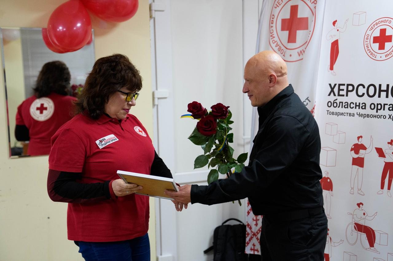 З нагоди річниці представників Херсонської обласної організації Червоного Хреста привітав заступник начальника Херсонської ОВА Євгеній Ігнатенко. У адміністрації відзначили вагомий внесок волонтерів у підтримку жителів області та наголосили, що їхня робота є особливо важливою в умовах постійних безпекових викликів.