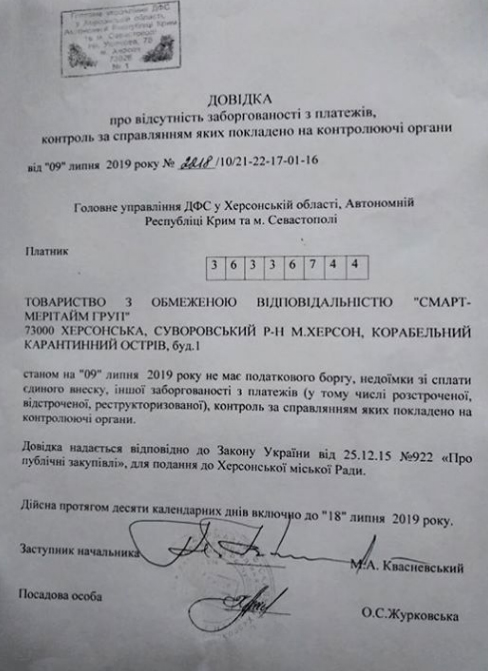 Настоятельно рекомендую мэру и его приспешникам предварительно изучать вопрос, который они хотят поднять. Потому что у компании Смарт Мэритайм Груп на сегодняшний день налоговой задолженности и иных задолженностей по платежам НЕТ!