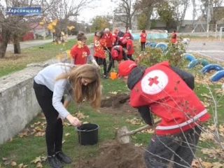 У херсонській загальноосвітній школі № 13 з'явилась березова алея: висадили дерева учні 9 класу – за ініціативи та підтримки представників товариства Червоного Хреста...