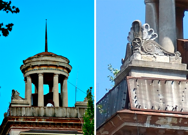 А бачите на даху чи то оглядовий майданчик, чи альтанка. Як гарно збережено старовинний вигляд! І комуністична символіка нікому не заважає – не досягла туди декомунізація!!! Вже й прадавні тополі проросли. Хтось запчастини для будівництва дирижаблю «Херсонбург» там наскладав. Хто казав, що у нас мало історичних пам'яток?