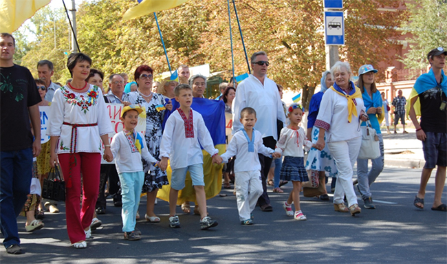 На Митинге Единства с национальной символикой Украины в руках пришли украинцы, русские, татары, евреи, армяне и многие другие. Все они, как единая семья, демонстрировали свой Украинский патриотизм. Да, Херсонщина многонациональна!! Херсонщина – это область, в которой живут украинские патриоты разных национальностей.