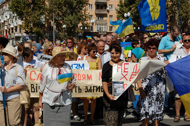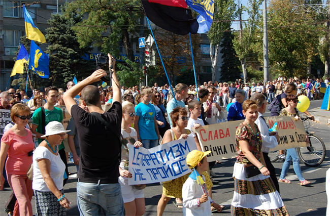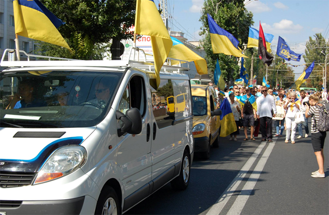По окончанию митинга было организовано шествие мира от площади Свободы до Набережной парка Славы. Во главе колонны, растянувшейся на не одну сотню метров, двигался Херсонский автомайдан.
