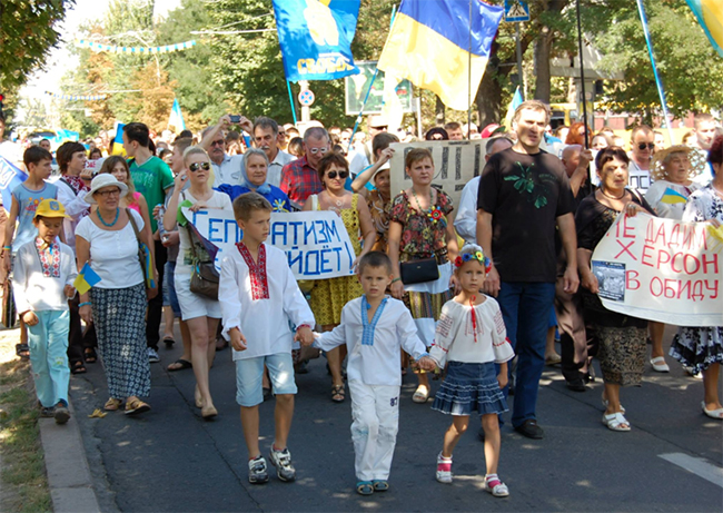 Столь массовое мероприятие, проведенное без областных и городских чиновников, лишний раз продемонстрировало истинные настроения в Херсоне.