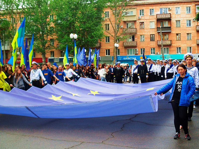 По этому поводу по всей стране прошли различные торжества. В частности, в Херсоне на площади. Свободы состоялись митинг и церемония поднятия флага Евросоюза рядом с флагом Украины.